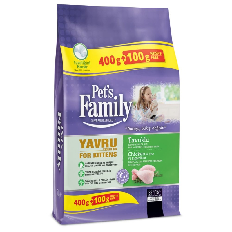 Yavru kedilerin sağlıklı büyümeleri, gelişimleri için tavuklu, kolay sindirilebilir süper premium tam besleyici mama.
